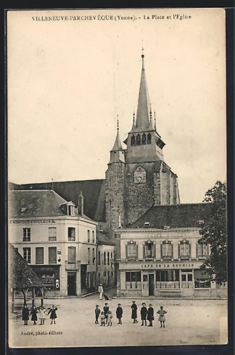 AK Villeneuve-l`Archevêque /Yonne, La Place et l`Église
