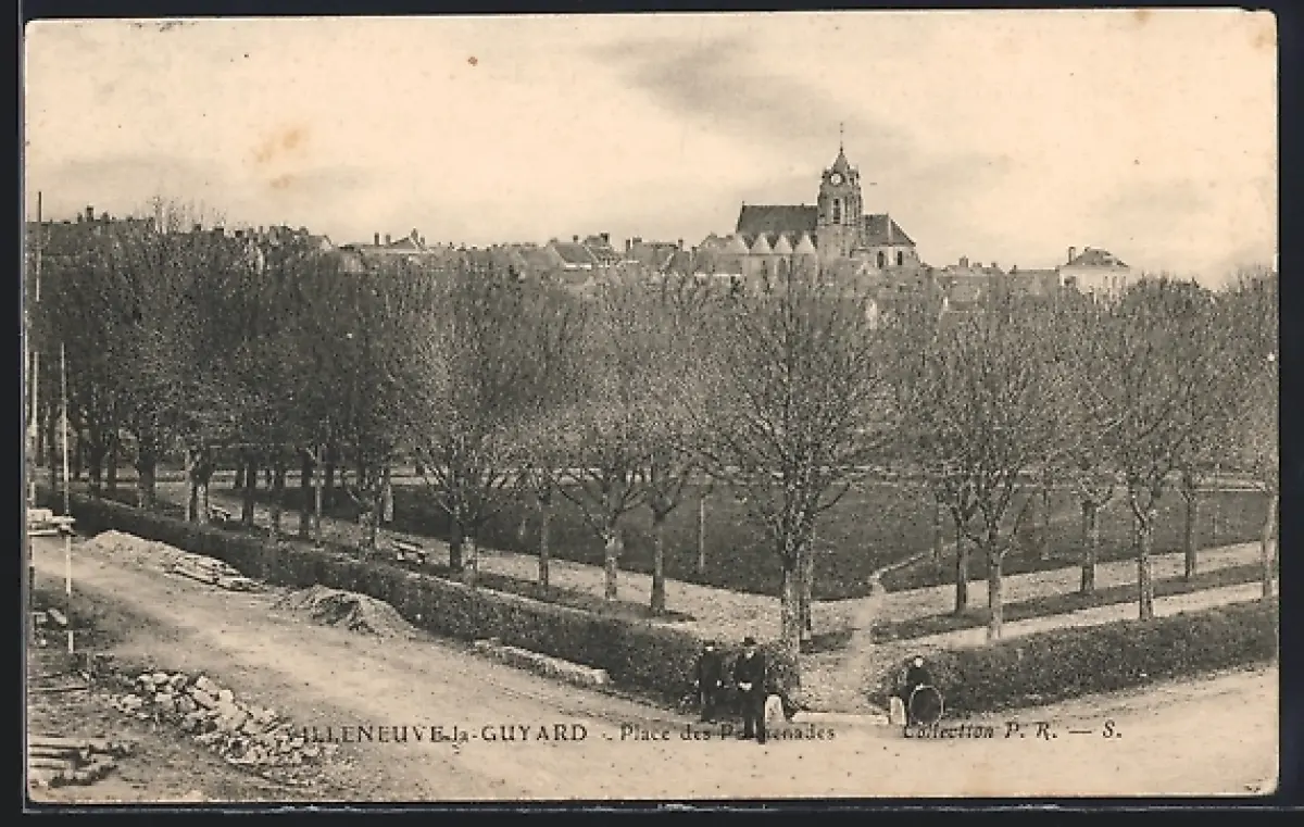 AK Villeneuve-la-Guyard, Place des Promenades avec vue sur l`église