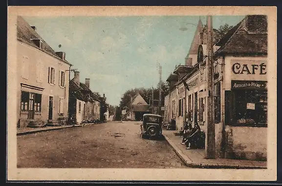 AK Villeneuve-sur-Cher, Route de Saint-Florent avec café et voiture ancienne