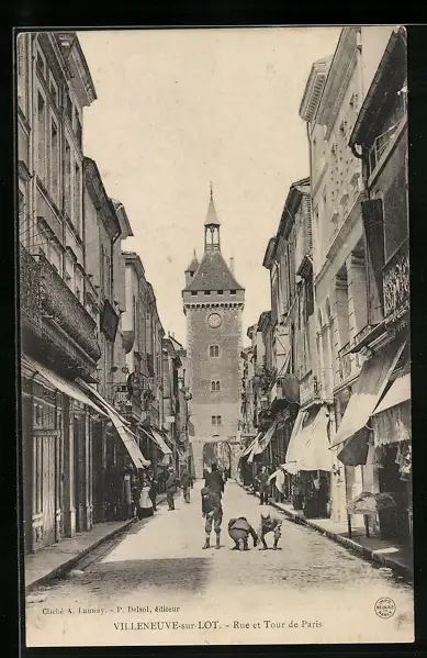 AK Villeneuve-sur-Lot, Rue et Tour de Paris