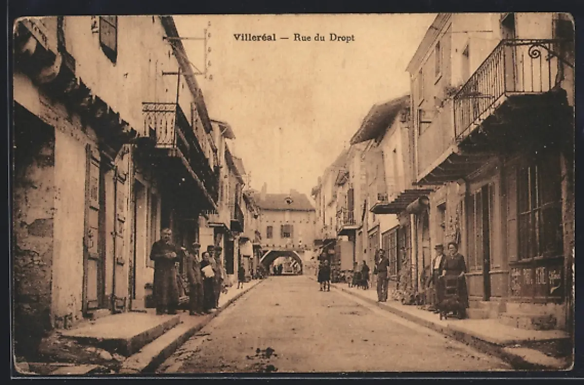 AK Villeréal, Rue du Dropt animée avec habitants et architecture traditionnelle