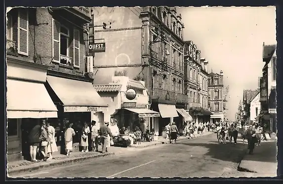 AK Villers-sur-Mer, Rue du Général-de-Gaulle animée avec passants et commerces