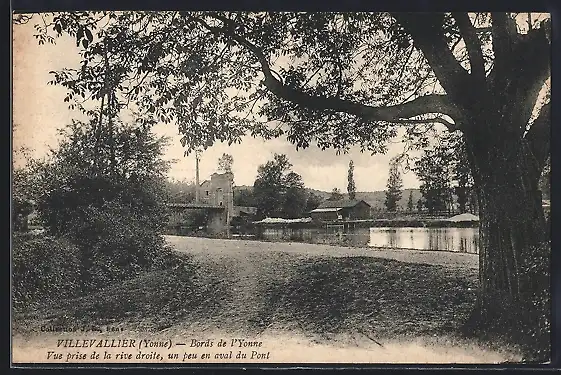 AK Villevallier /Yonne, Bords de l`Yonne, vue prise de la rive droite, un peu en aval du Pont