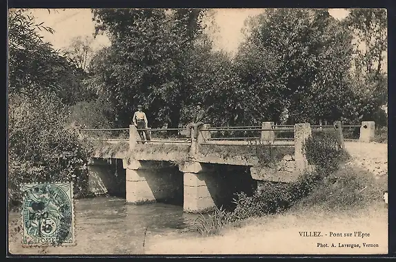 AK Villez, Pont sur l`Epte avec un homme se reposant sur la rambarde
