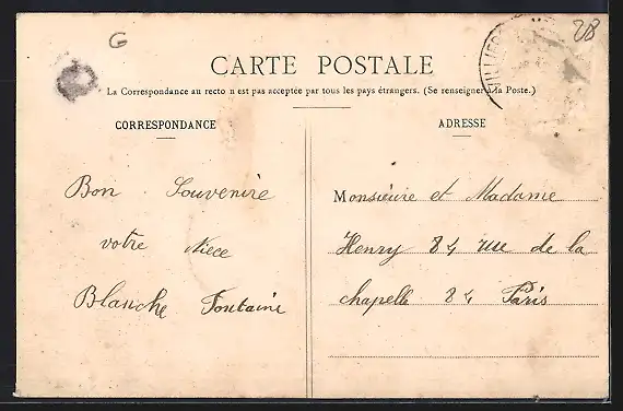 alte Ansichtskarte, gelaufen, Briefmarke entfernt, guter Zustand