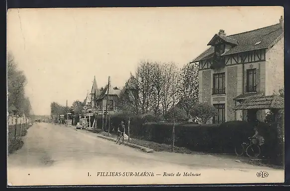 AK Villiers-sur-Marne, Route de Malnoue avec cyclistes et maisons à colombages