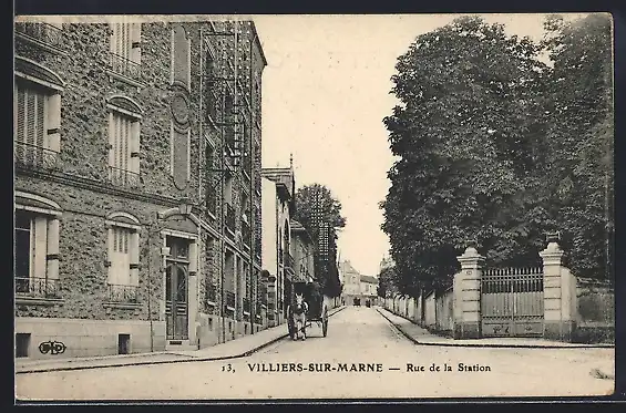 AK Villiers-sur-Marne, Rue de la Station avec calèche