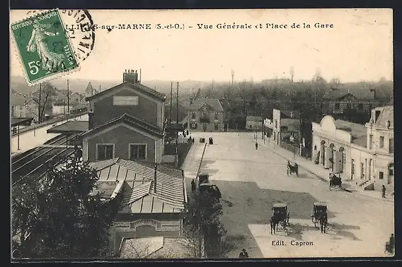 AK Villiers-sur-Marne, Vue Générale et Place de la Gare