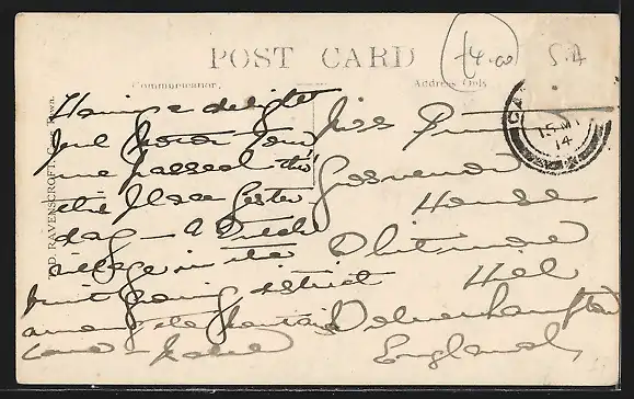 alte Ansichtskarte, gelaufen 1914, Briefmarke entfernt, guter Zustand