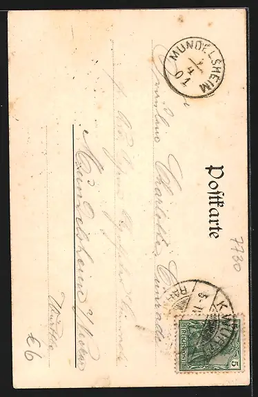 alte Ansichtskarte, gelaufen 1901, Abriebspur re. oben, guter Zustand