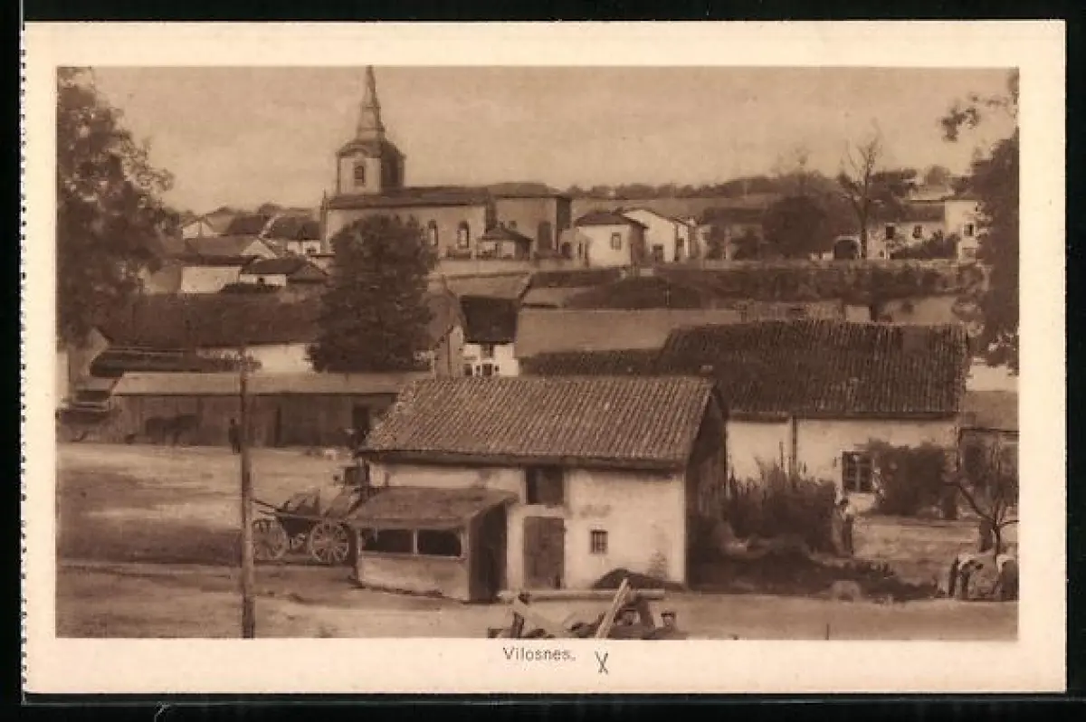 AK Vilosnes, Vue du village avec église en arrière-plan