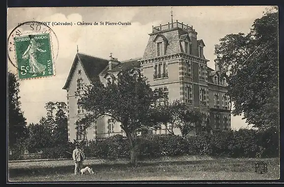 AK Vimont, Château de St Pierre-Oursin avec promeneur et chien