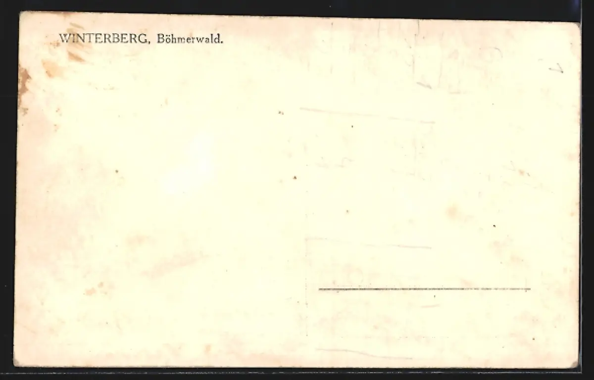 Personenbezogene Daten auf der Rückseite der Karte wurden durch blauen Textmarker unkenntlich gemacht. Die blauen Stellen sind auf die Vorderseite durchgeweicht und wirken sich negativ auf das Postkartenfoto aus