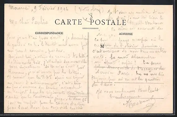 Personenbezogene Daten auf der Rückseite der Karte wurden durch blauen Textmarker unkenntlich gemacht. Die blauen Stellen sind auf die Vorderseite durchgeweicht und wirken sich negativ auf das Postkartenfoto aus