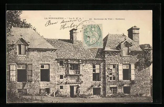 AK Vire, Altes Haus mit zerstörten Scheiben