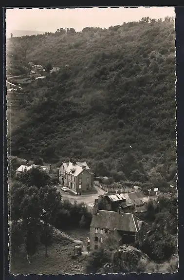 AK Vire, Vallée des Vaux avec maisons entourées de collines boisées