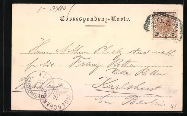 alte Ansichtskarte, gelaufen 1898, Eckknick li. unten, guter Zustand