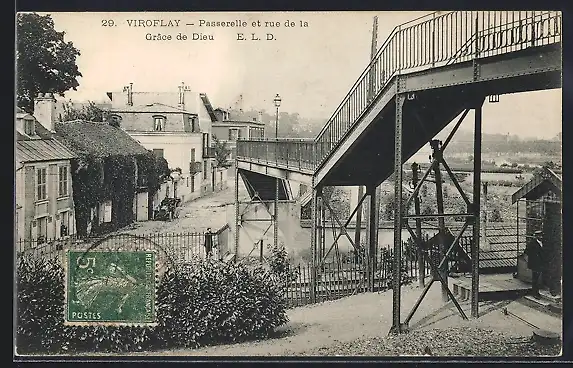 AK Viroflay, Passerelle et rue de la Grace de Dieu