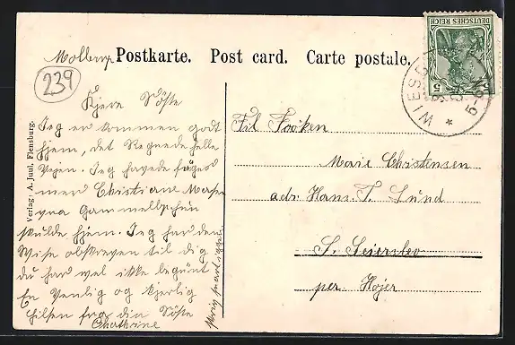 alte Ansichtskarte, gelaufen 1909, Abriebspuren li. Mitte u. re. unten, Eckknick oben re., guter Zustand