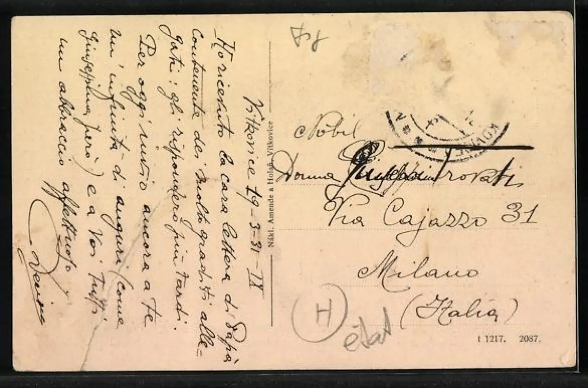 gelaufen 1931, Briefmarke entfernt, Bugspur re. unten, guter Zustand