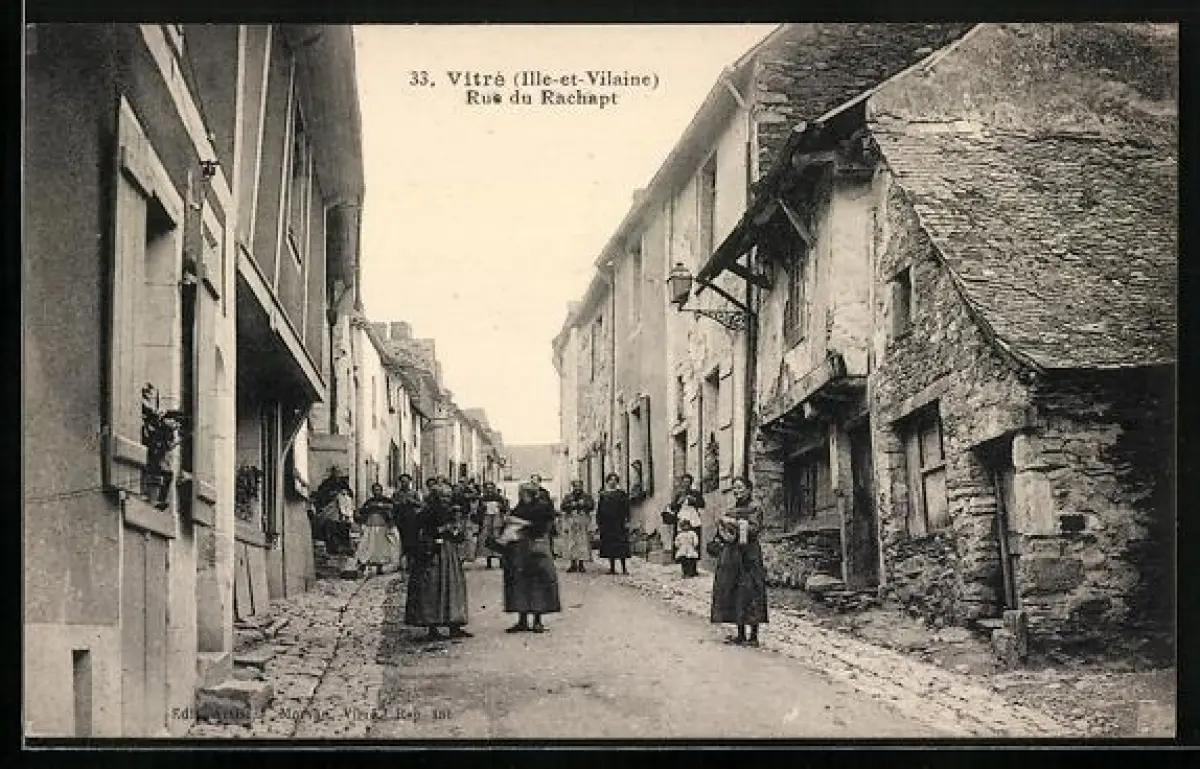 AK Vitré, Rue de Rachapt, Strassenpartie mit Frauen