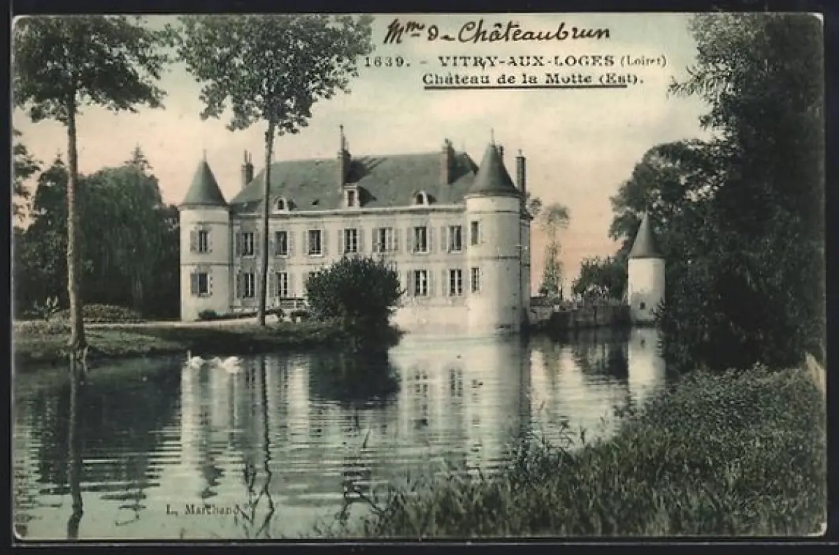 AK Vitry-aux-Loges /Loiret, Château de la Motte, Est, et son reflet dans le lac