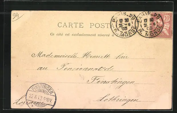 gelaufen 1903, Einriss re. oben, sonst guter Zustand