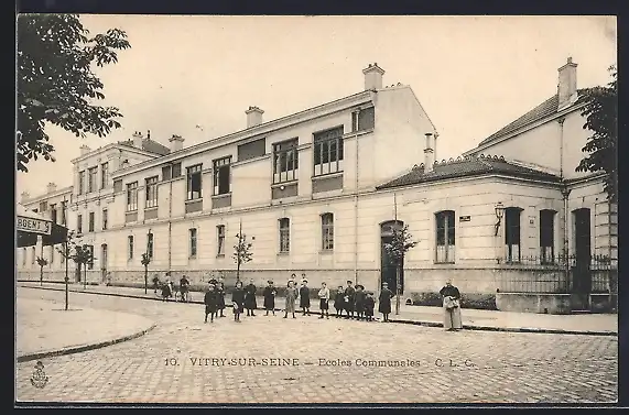 AK Vitry-sur-Seine, Écoles Communales avec enfants devant l`établissement