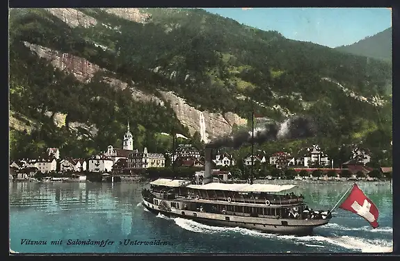 AK Vitznau, Salondampfer Unterwalden vor dem Ort