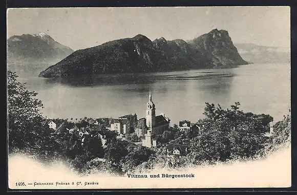 AK Vitznau, Teilansicht mit Kirche und Bürgenstock