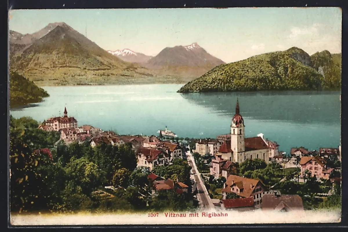 AK Vitznau, Teilansicht mit Kirche und Rigibahn