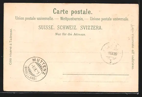 gelaufen 1899, Briefmarke entfernt, guter Zustand