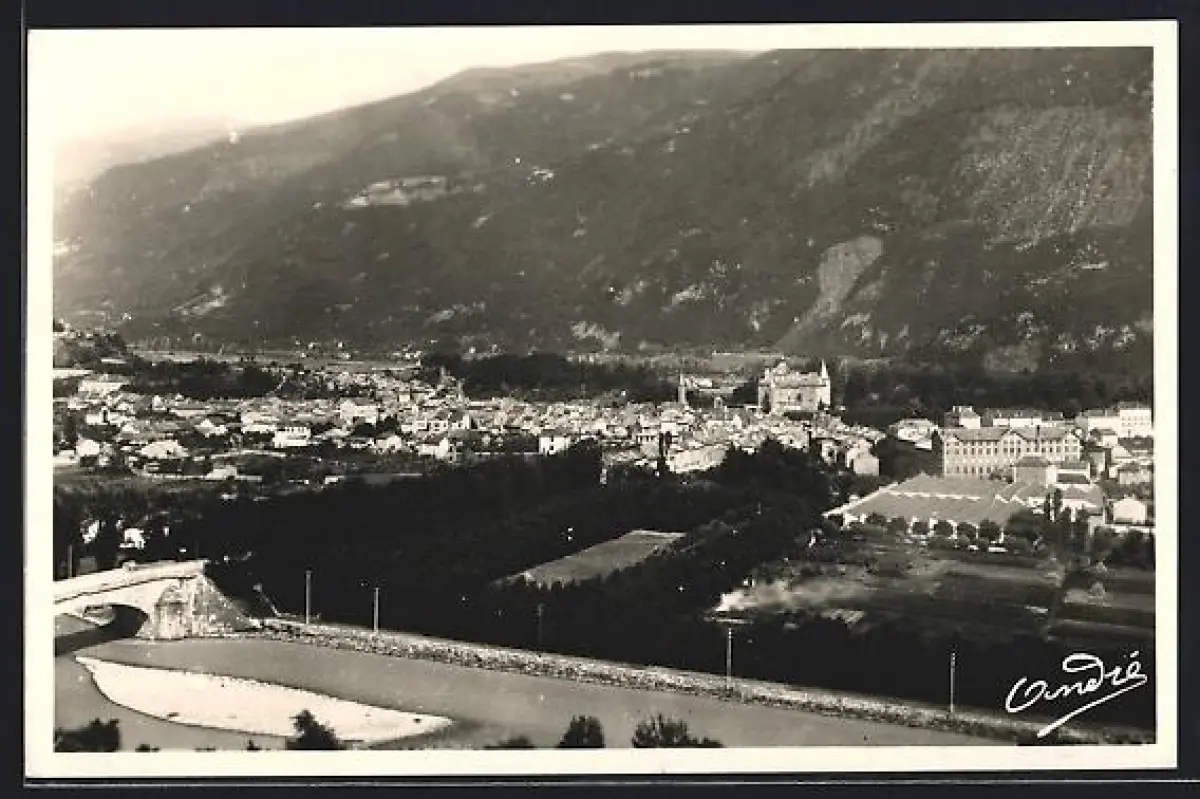 AK Vizille, Vue générale, Le pont sur la Romanche