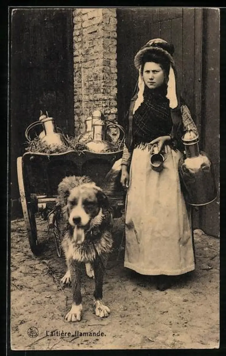 AK Vlaamsche Melkboerin, Milchbäuerin mit Hundegespann