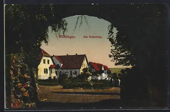 AK Völklingen, Partie am Rotenberg, Blick durch bewachsenes Tor auf Ortspartie