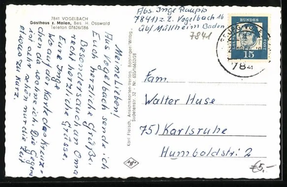 AK Vogelbach /Südschwarzwald, Ortsansicht, Gasthaus z. Maien, Bes. H. Osswald