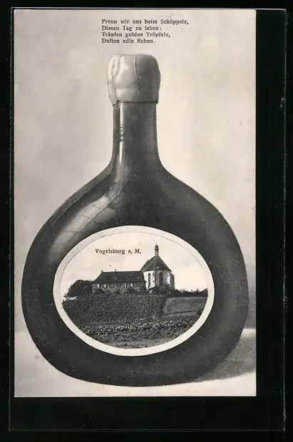 AK Vogelsburg a. M., Kirche im Bauch einer Weinflasche