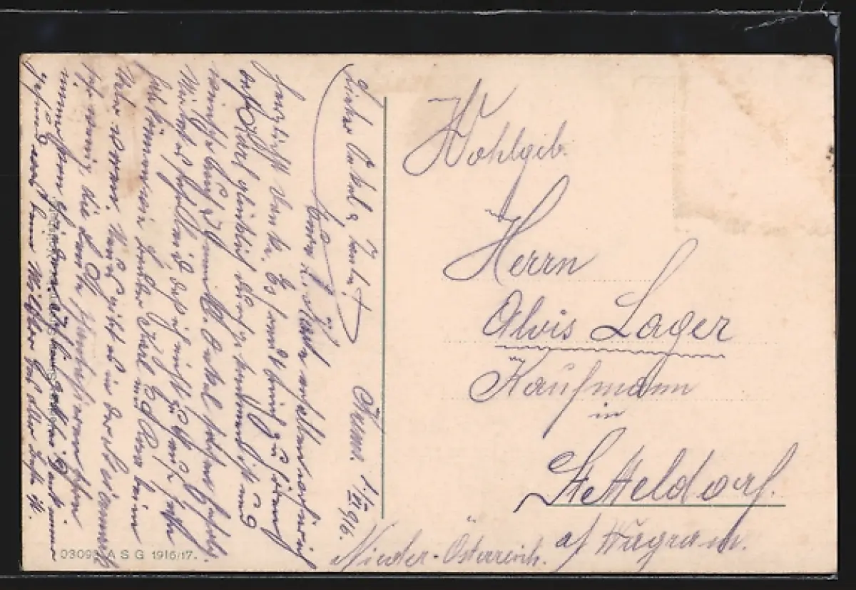 alte Ansichtskarte, gelaufen, Briefmarke entfernt, rückseitig Oberflächenschaden, guter Zustand