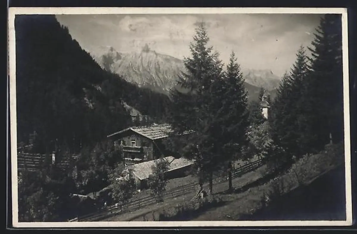 AK Volderwildbad, Blick auf einen Hof mit Gebirgspanorama