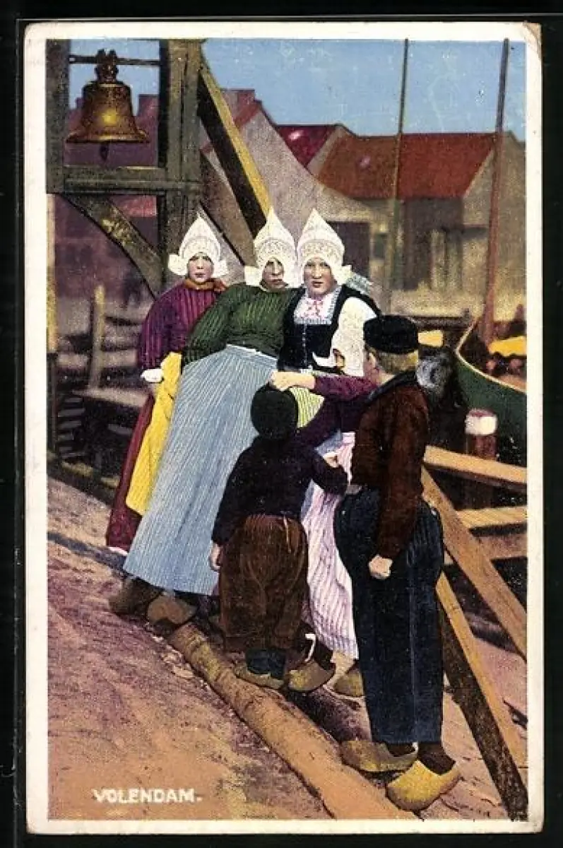 AK Volendam, Frauen in Tracht mit weissen Hauben