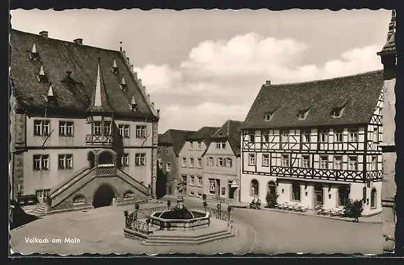 AK Volkach am Main, Rathaus mit Gasthaus Mainbrücke