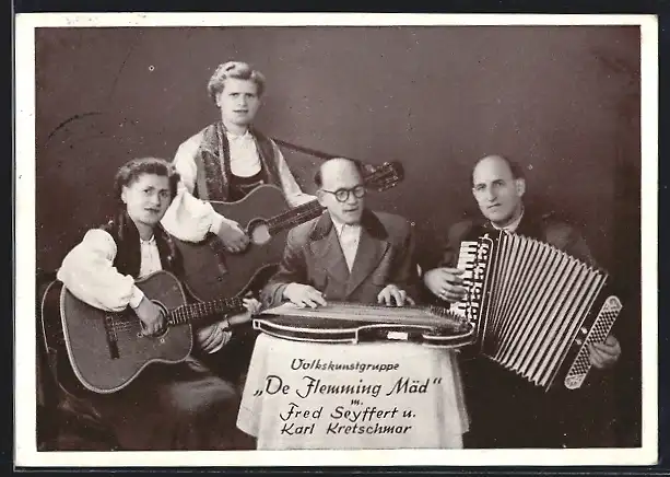 AK Volkskunstgruppe De Flemming Mäd, m. Fred Seyffert u. Karl Kretschmar