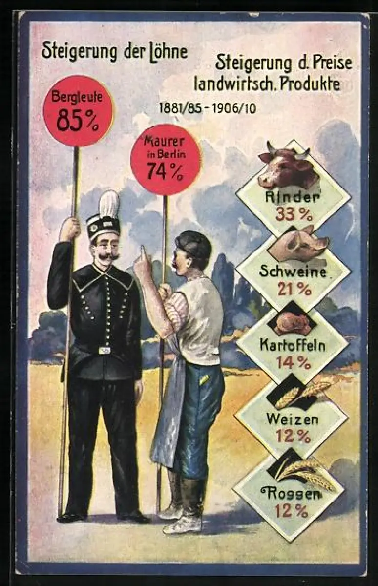AK Volkswirtschaftliche Wahrheiten: Steigerung der Löhne und Steigerung d. Preise landwirtsch. Produkte 1881-1906