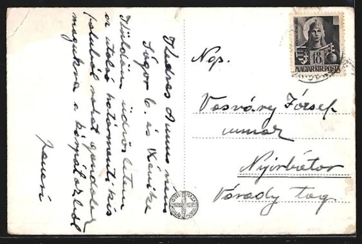 alte Ansichtskarte, gelaufen, Eckknicke re. oben, rückseitig Oberflächenschaden, minimaler Einriss li. oben, Bugspur unten mittig