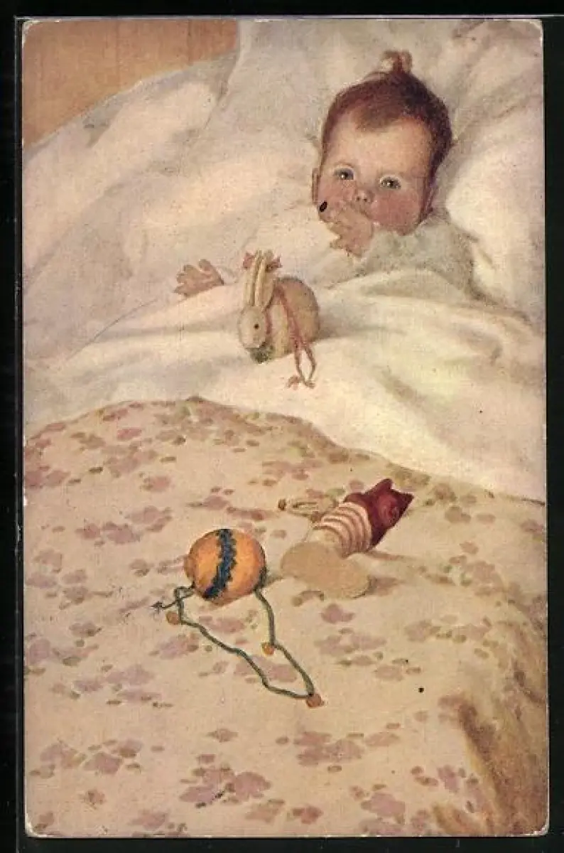 AK Vom Christkindl, kleines Kind mit Spielzeug