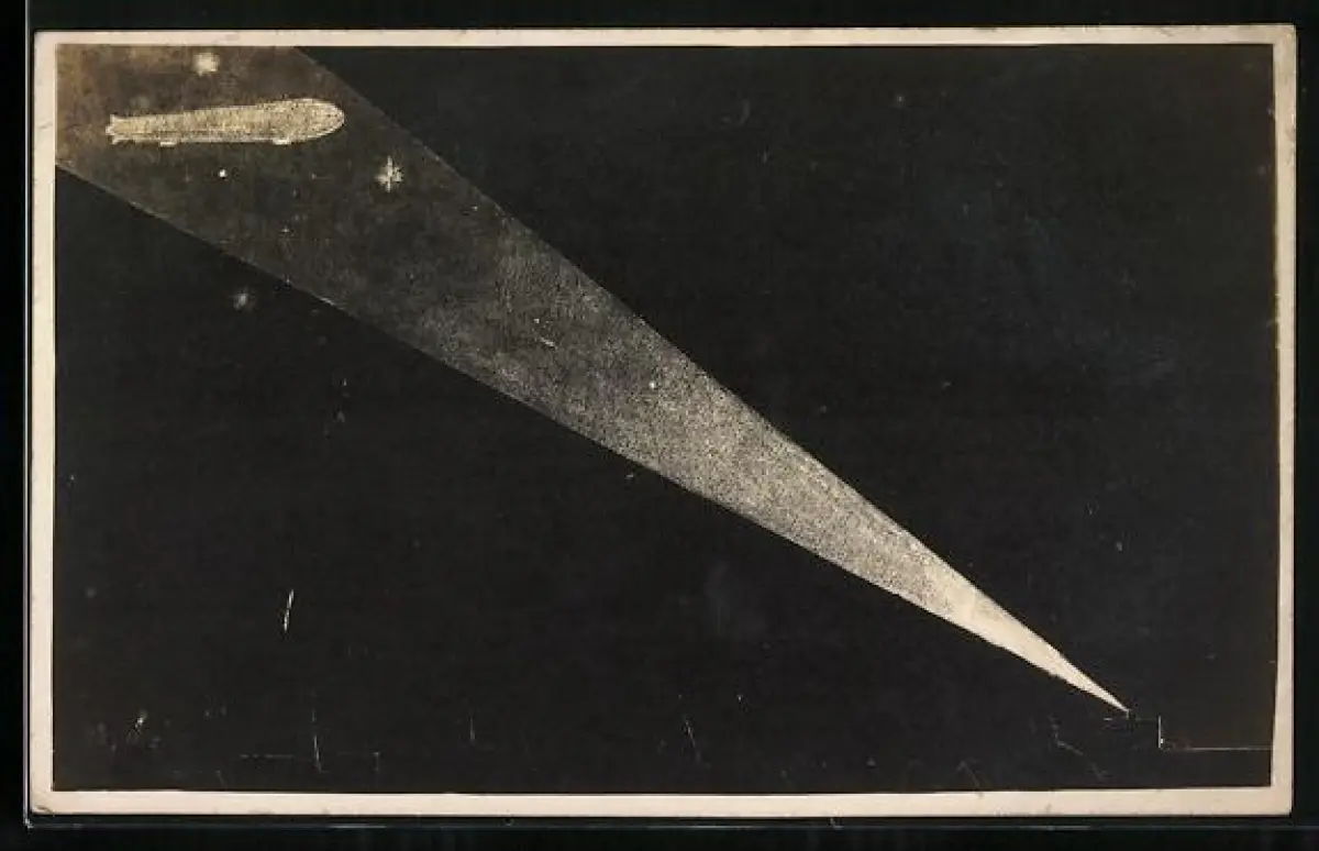 AK Von Suchscheinwerfer angestrahlter Zeppelin