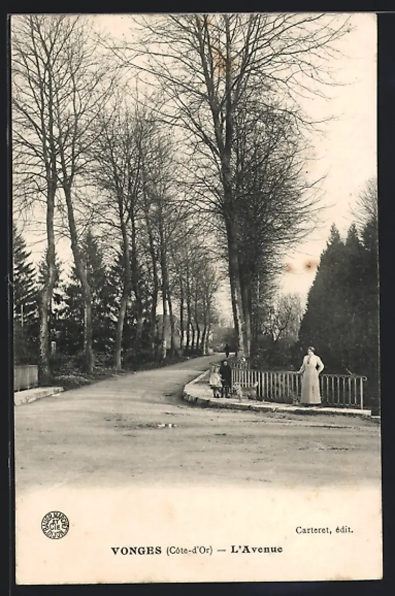 AK Vonges /Côte-d`Or, L`Avenue avec une femme sur le pont