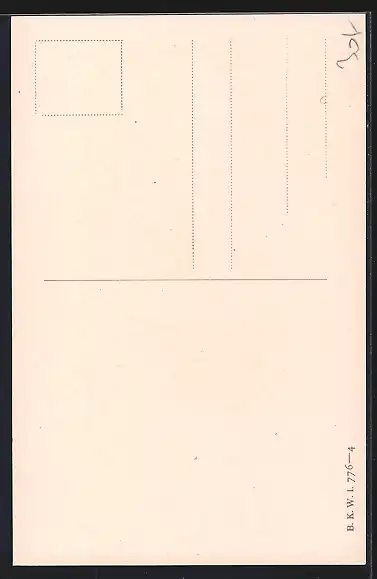 Personenbezogene Daten auf der Rückseite der Karte wurden durch blauen Textmarker unkenntlich gemacht. Die blauen Stellen sind auf die Vorderseite durchgeweicht und wirken sich negativ auf das Postkartenfoto aus