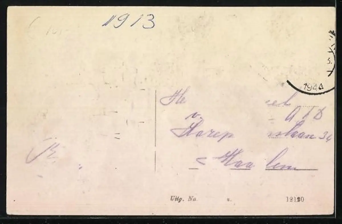 alte Ansichtskarte, gelaufen 1913, Briefmarke entfernt, rückseitig Oberflächenschaden, guter Zustand