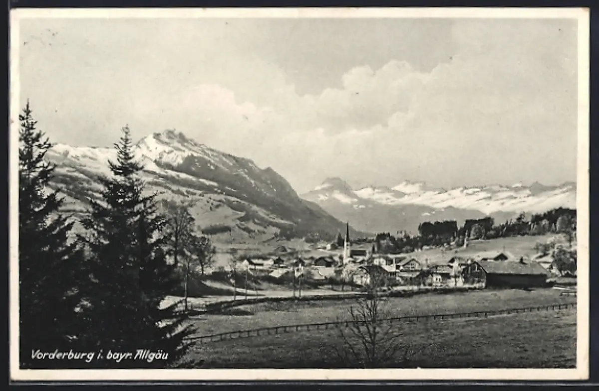 AK Vorderburg /Allgäu, Gesamtansicht mit Bergpanorama